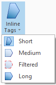 Inline-Tags: Ändert den Detailgrad, mit dem die Tags in memoQ angezeigt werden. Öffnet ein Menü: