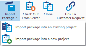 Paket in ein bestehendes Projekt importieren: Importiert den Inhalt eines Projektpakets, das Sie von Ihrem Kunden erhalten haben. Wenn Sie auf das Symbol klicken, wird das Fenster Öffnen angezeigt. Nachdem Sie eine Paketdatei ausgewählt haben, wird der Assistent für Paket importieren geöffnet.