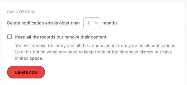 Sie die Anzahl der Monate aus der Dropdown-Liste für Benachrichtigungs-E-Mails löschen, die älter sind als X Monate.