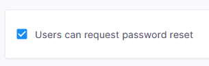 Sie können den Benutzern erlauben, ihre eigenen Kennwörter zurückzusetzen. Verwenden Sie dazu den Abschnitt Kennwort zurücksetzen: