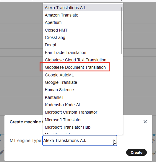 Choose Create → globalese by memoQ Document Translation → Create