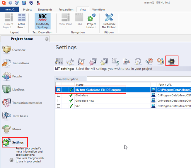 3. Select the globalese by memoQ engine(s) you want to use.