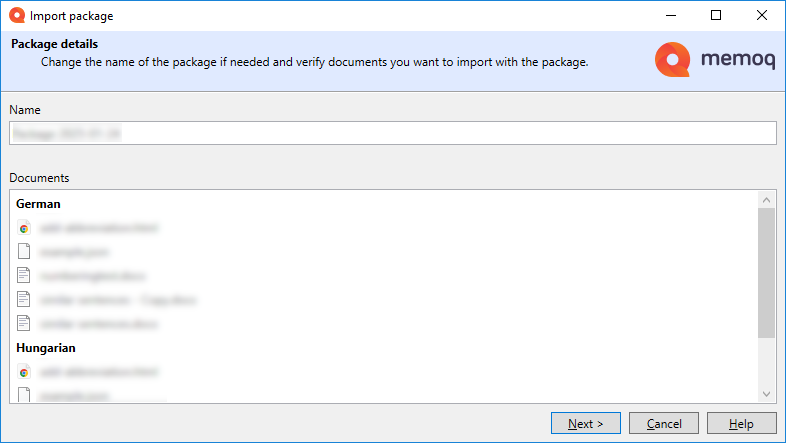 翻訳ペインは、memoQでの作業の中心となる部分です。ここにはドキュメントのリストが表示され、どれだけの作業が行われ、どれだけの作業が残っているかの概要が表示されます。