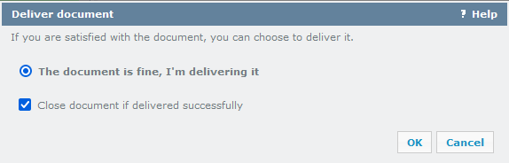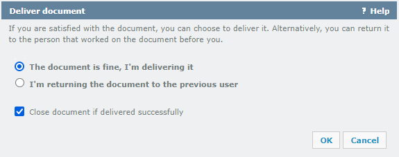 ドキュメントをレビューした場合、ドキュメントを納品するか、前のステップに戻すかを選択できます。