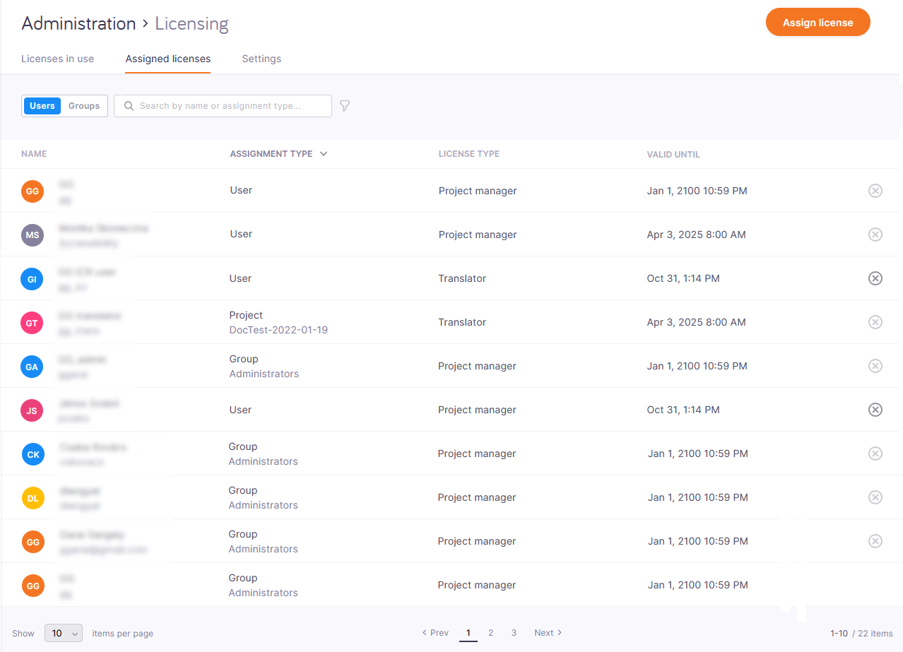 特定のサブベンダーユーザーにはCALライセンスを割り当てることができません:memoQ TMSの管理者は、サブベンダーマネージャによって追加されたユーザーを見ることができません。サブベンダーグループにライセンスを割り当てることはできますが、ユーザーに割り当てることはできません。