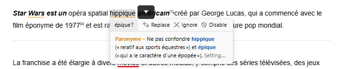 Antidote's web app opens showing you all the possible corrections. To apply one of them, right-click the correction and choose Replace.