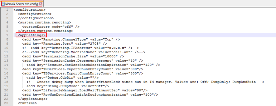 2. Locate the MemoQ.exe.config file on your local computer.