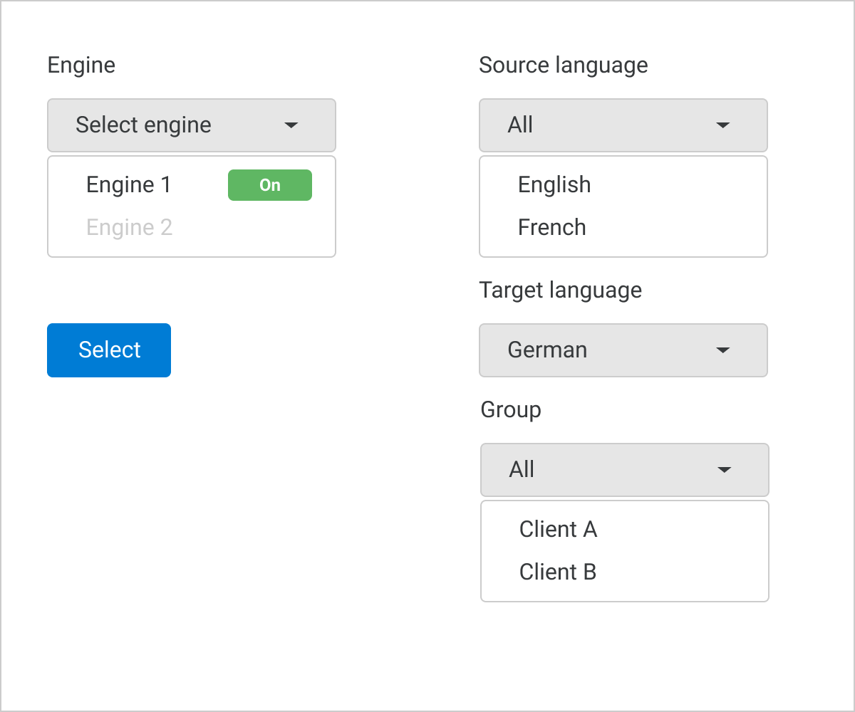 2.4 If any of these is selected, run a new query for engines using the source_language, target_language or group_ids query parameters.
